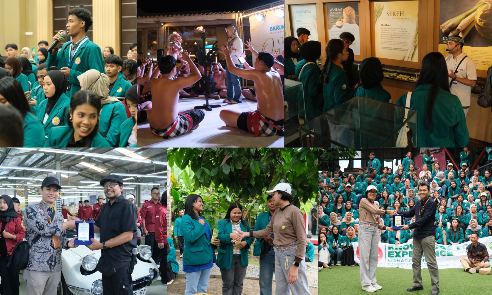 Pada Jumat, 26 September 2025, mahasiswa berkesempatan mendalami industri berbasis lokal dengan mengunjungi Oemah Herborist dan Blackeye Coffee di kawasan destinasi wisata edukatif Secret Garden Village. Kunjungan ini memperkaya pemahaman mahasiswa mengenai strategi pengembangan produk herbal terkhusus produk kecantikan dan perawatan tubuh milik brand Herborist. Di Secret Garden Village, mahasiswa juga belajar berbagai peralatan produksi kopi, proses pengolahan kopi, berbagai jenis kopi lokal Indonesia dan strategi Blackeye Coffee membranding produknya sehingga mampu menghasilkan produk kopi yang premium.