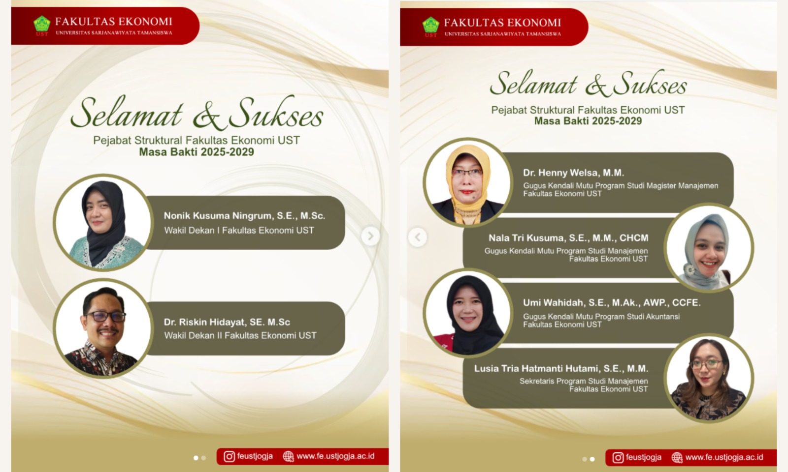 Penetapan pejabat struktural masa bakti 2025–2029 ini diharapkan mampu mendorong terciptanya tata kelola fakultas yang lebih profesional, responsif, dan adaptif terhadap tantangan pendidikan tinggi yang terus berkembang. Fakultas Ekonomi UST berkomitmen untuk terus meningkatkan kualitas layanan akademik serta menciptakan lingkungan belajar yang unggul dan berkarakter sesuai dengan nilai-nilai Tamansiswa.