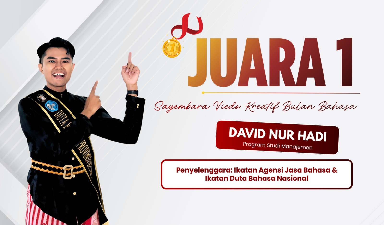 Prestasi membanggakan kembali ditorehkan oleh mahasiswa Fakultas Ekonomi Universitas Sarjanawiyata Tamansiswa. David Nur Hadi, mahasiswa Program Studi Manajemen, berhasil meraih Juara 1 dalam Sayembara Video Kreatif 2025.