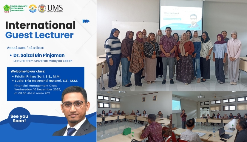 Komitmen tersebut diwujudkan melalui kerja sama akademik dengan Universitas Malaysia Sabah (UMS) yang direalisasikan dalam kegiatan International Guest Lecturer pada Rabu, 10 Desember 2025. Kegiatan ini diselenggarakan di Ruang Kelas 202 dan dimulai pukul 08.00 WIB, dengan menghadirkan Dr. Saizal Bin Pinjaman, dosen Universitas Malaysia Sabah, sebagai dosen tamu pada mata kuliah Manajemen Keuangan Billingual Class.